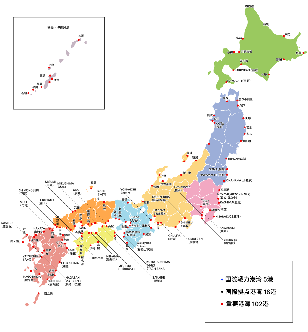 All major ports across Japan,